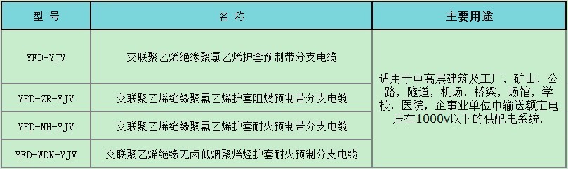 五、預(yù)制分支電纜的型號(hào)、名稱(chēng)及主要用途